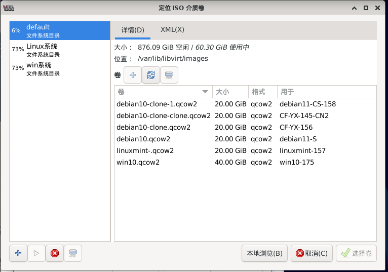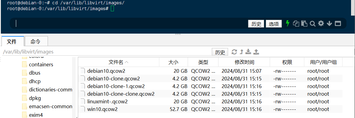 qcow2文件保存在/var/lib/libvirt/images/,这里有个小问题,很多debian都基于同一个克隆出来的,名字有没修改,结果不好一一对应。qcow2文件名不能修改,会牵扯快照及设置问题。
